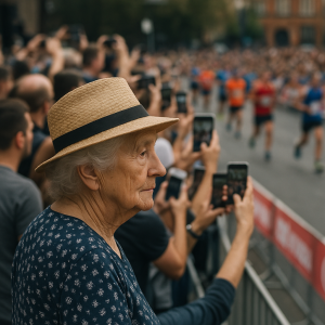 בתמונה שרצה באינטרנט במשך הרבה זמן, רואים זקנה שעמדה בצד מסלול מרוץ עממי (כך זה נראה לפחות). מאות אנשים עמדו סביבה, כולם עם טלפונים באוויר – מצלמים, מצלמים את עצמם מצלמים, מצלמים את האחרים ומצלמים את האחרים מצלמים. ורק אישה זקנה אחת, בשמלה פשוטה וכובע ישן, עמדה בשקט והביטה במרוץ. לא אחזה טלפון. לא תיעדה. רק הייתה שם. ראתה את הרצים. הרגישה את הרוח. הריחה את האבק.